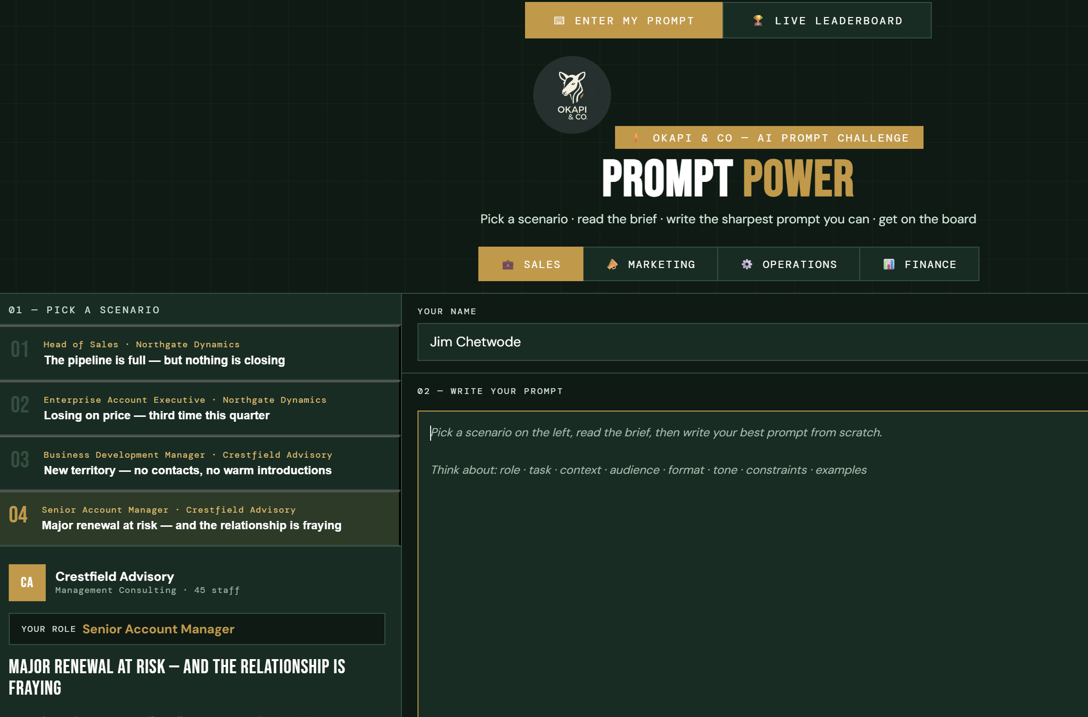 This is why we built the Prompt Power competition tool. It takes prompt engineering from theory into practice. It shows teams and individuals exactly how their prompts score against a rubric that measures all the characteristics above.